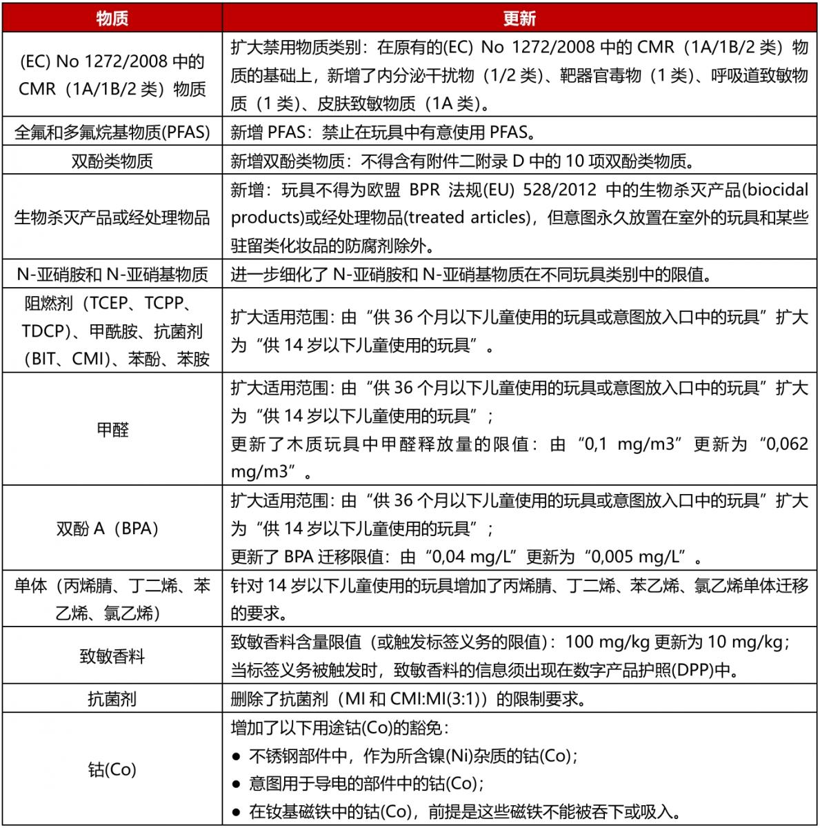 • 增加了使用小部件电池的玩具和可充电电池玩具的安全要求。