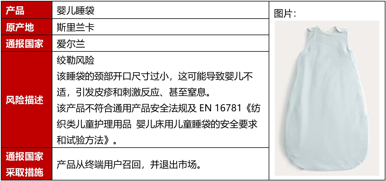 2025年12月,欧洲、美国、加拿大共发生6起纺织及服装产品召回案例,其中有3例产自中国。召回的原因包括化学、微生物、绞勒、小部件等危害。