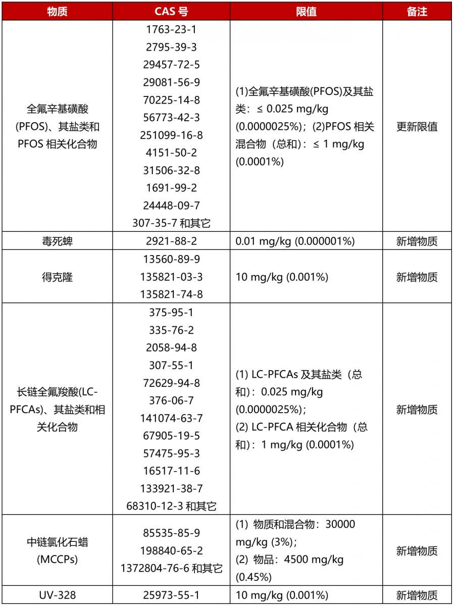 2026年3月18日,英国环境、食品与农村事务部(DEFRA)提议修订UK POPs法规(The Persistent Organic Pollutants (Amendment) Regulations),拟增加毒死蜱、得克隆、LC-PFCAs、MCCPs和UV-328五项物质,并修订现有物质PFOS的限值。该草案提议从2026年12月16日开始执行。