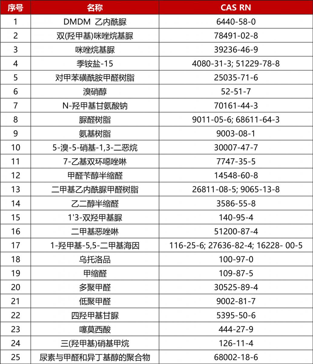 甲醛释放体清单如下: