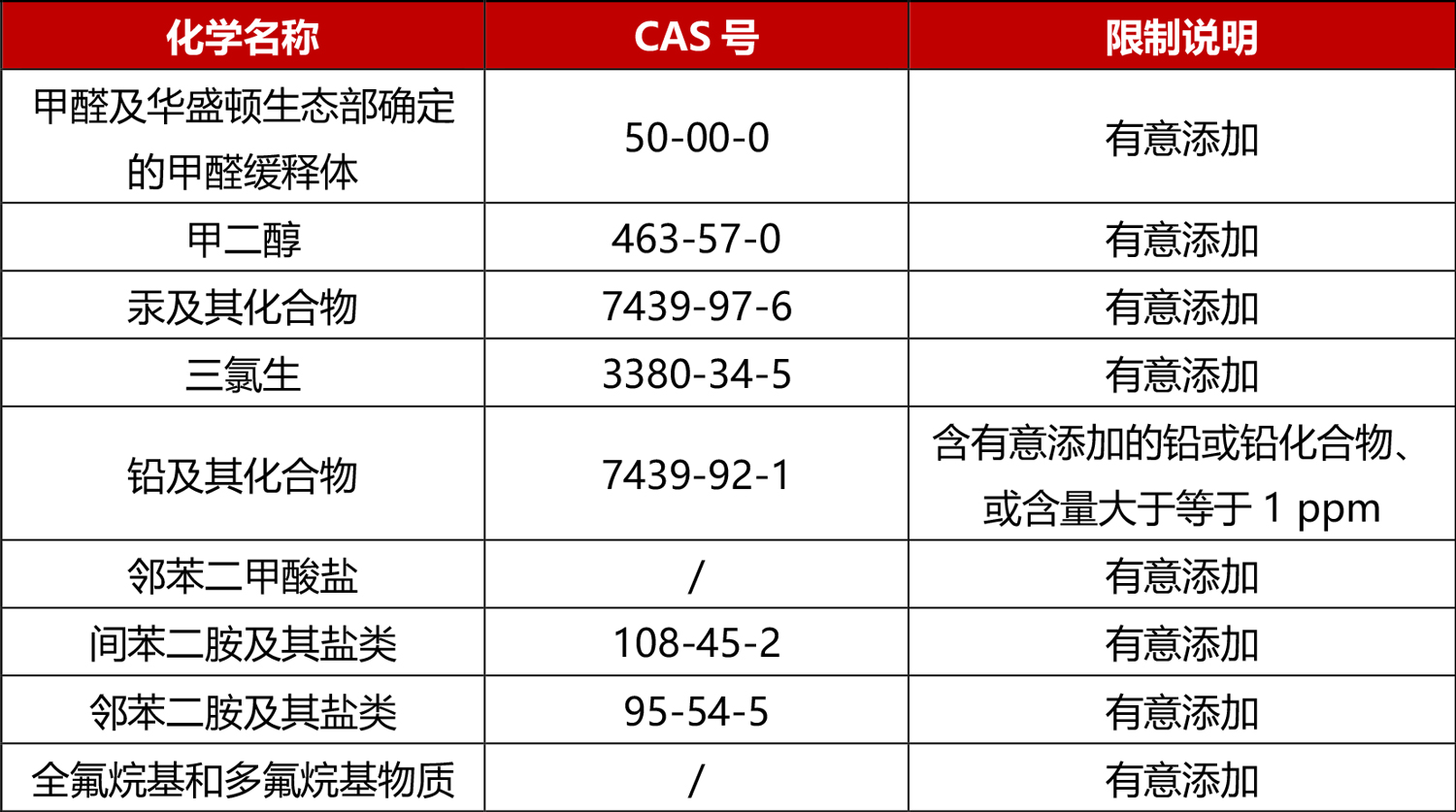 2025年8月28日,华盛顿生态部通过了一项新规定,第173-339章WAC:化妆品限制,确定了化妆品中禁止有意添加的甲醛释放体清单。该限制将于2027年1月1日生效,州内零售商的现有库存化妆品可销售至2027年12月31日。