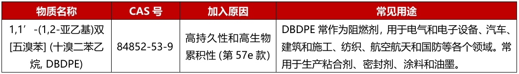 2025年11月5日,欧洲化学品管理局(ECHA)正式将1,1’-(1,2-亚乙基)双[五溴苯](十溴二苯乙烷,DBDPE)纳入REACH高度关注物质(SVHC)清单,至此,REACH高度关注物质清单正式增至251项。